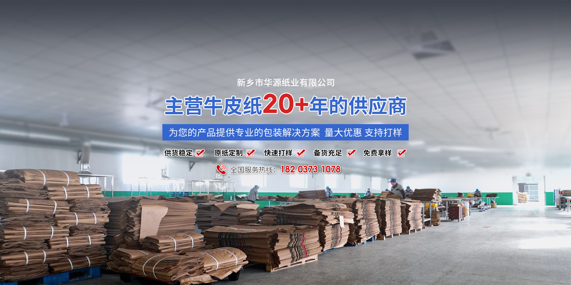新鄉(xiāng)市華源紙業(yè)有限公司是一家主要經(jīng)營全木漿紙袋紙、牛皮紙、精制牛皮紙、精制復合原紙、全木漿美廢包裝紙、進口白牛皮紙、本色牛皮紙、淋膜牛皮紙等系列產(chǎn)品的公司,公司創(chuàng)建于1999年,坐落于河南省新鄉(xiāng)市,占地約10畝,公司員工20人,其中技術(shù)人才3名。公司自成立以來,秉承“誠信、品質(zhì)”的企業(yè)理念,已經(jīng)發(fā)展成為河南省獨具規(guī)模的牛皮紙經(jīng)銷商,現(xiàn)已和國內(nèi)多家知名造紙廠開展省級代理合作。公司的銷售網(wǎng)絡遍及各......